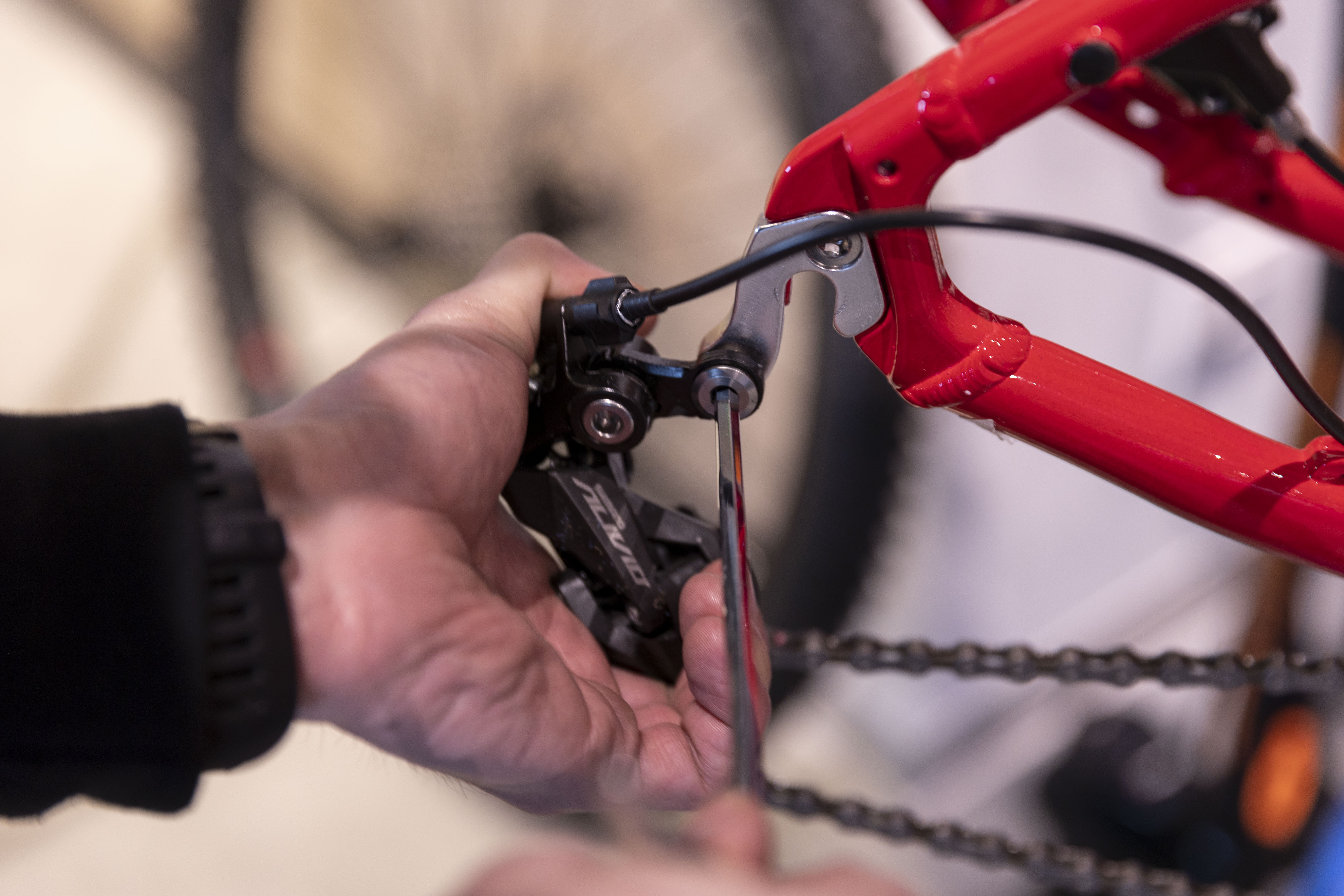 Výměna ohnuté patky není žádnou složitou operací. Potřebujete na ni pouze imbusový klíč, novou patku, pár minut času a trochu zručnosti. Zvládnete to v 5 krocích: