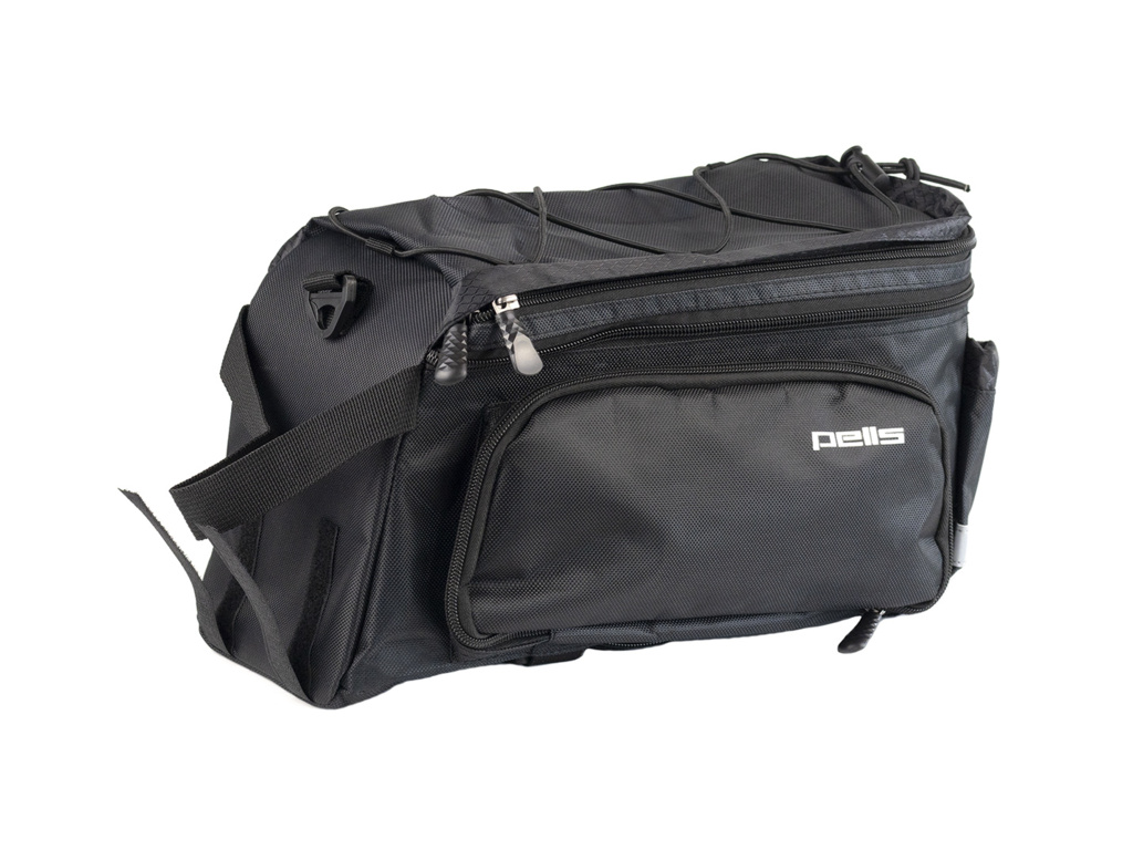 Prostornou brašnu na zadní nosič PELLS Loculo s možností dalšího rozšíření objemu rozepnutím zipu oceníte na dlouhých cyklovýletech. Model má jednoduchou montáž pomocí suchých zipů, lze ho sundat z nosiče a pohodlně přenášet díky přiloženému popruhu a chlubí se dostatkem kapes pro uložení drobnějších předmětů.