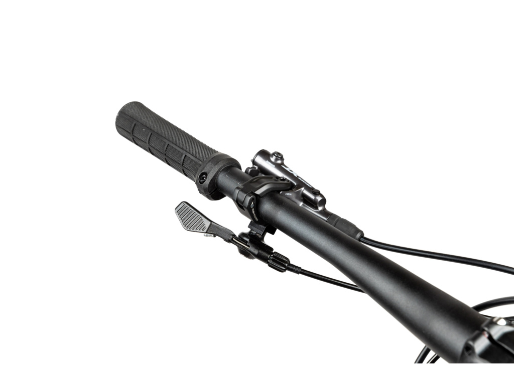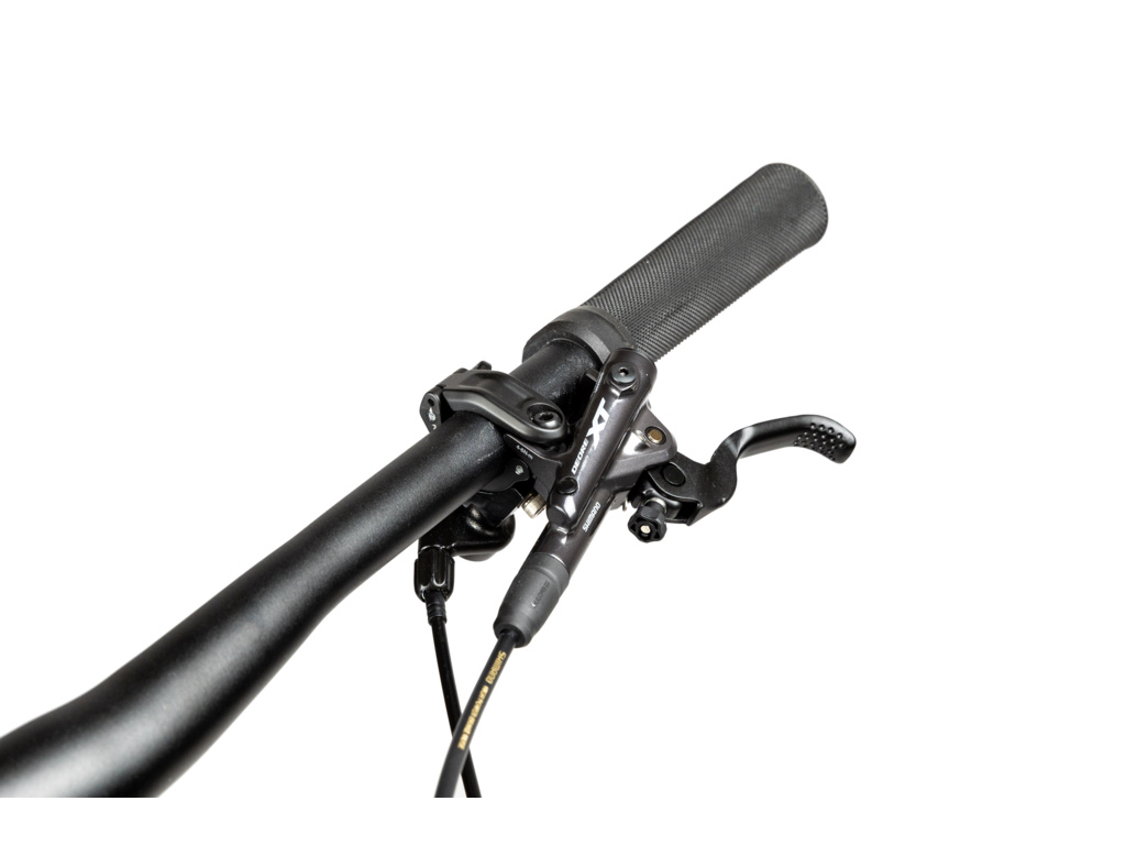O řazení i brzdění se na tomhle biku stará kompletní sada Shimano XT. Pohon má vzadu dvanáctikolečko s rozsahem kazety 10–51z, vpředu je 32z talíř. Čtyřpístkové brzdy se starají o precizní brzdění kdykoliv je potřeba.