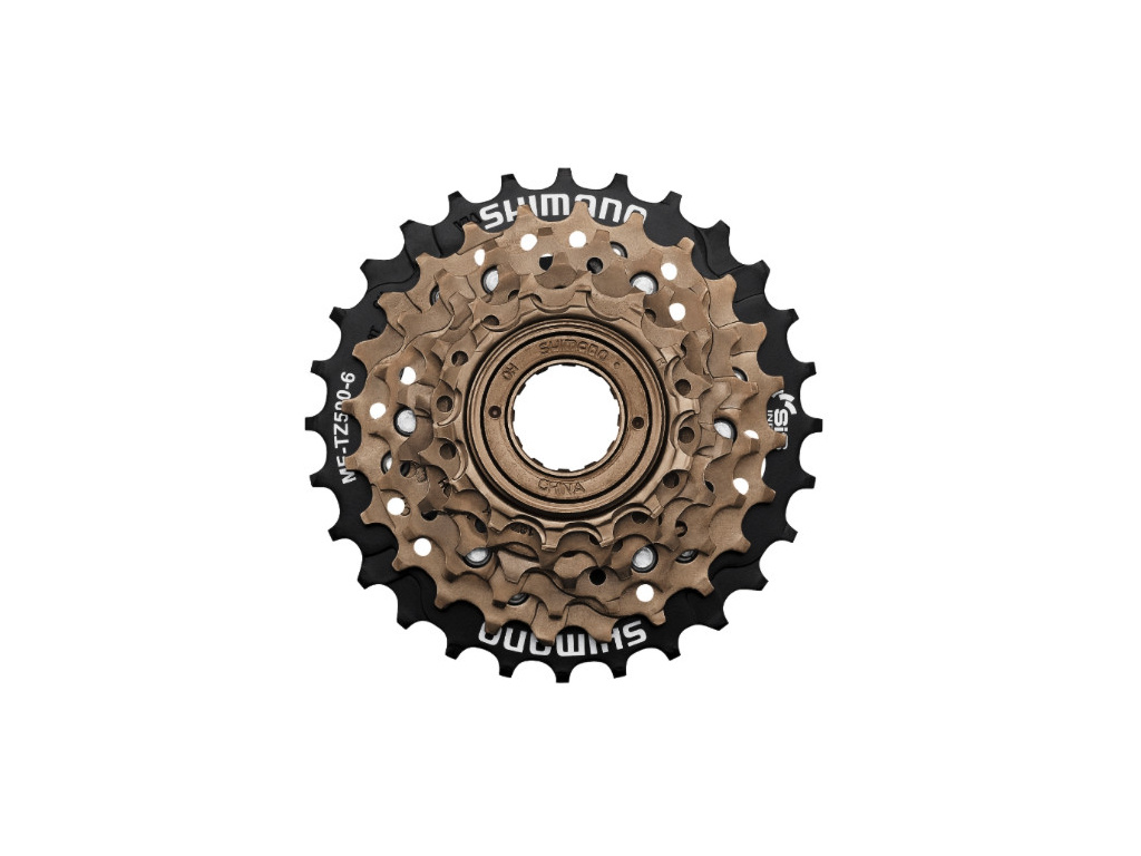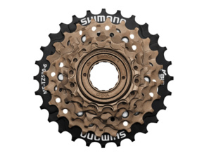 6-ti rychlostní šroubovací vícekolečko Shimano TZ50, používané na starších a levnějších modelech kol.